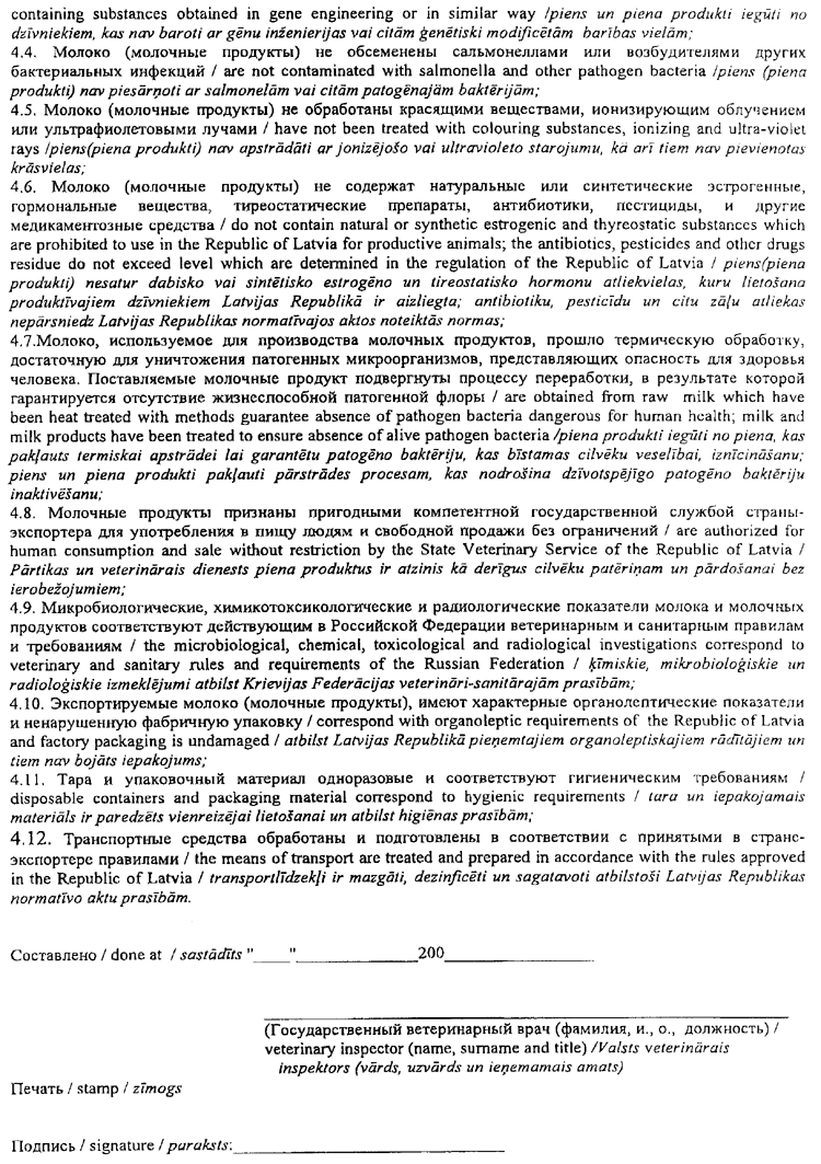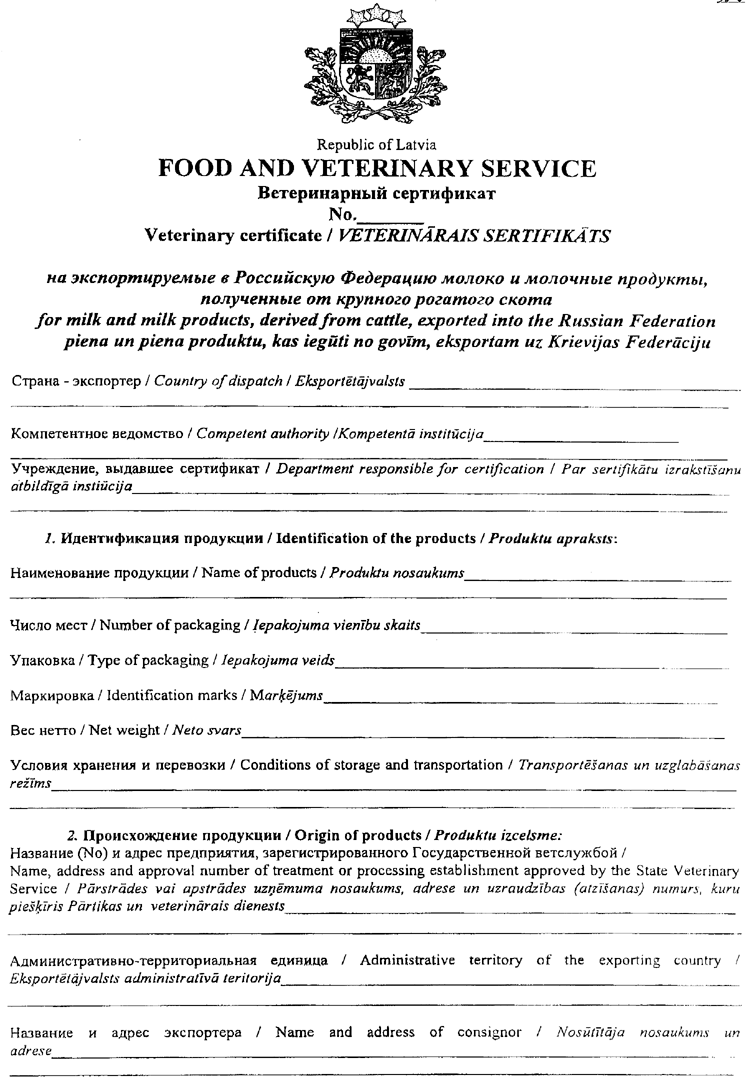 1. Piena un piena produktu eksportam uz Krievijas Federāciju izsniegt pielikumā noteiktās formas veterināro sertifikātu (1.pielikums);