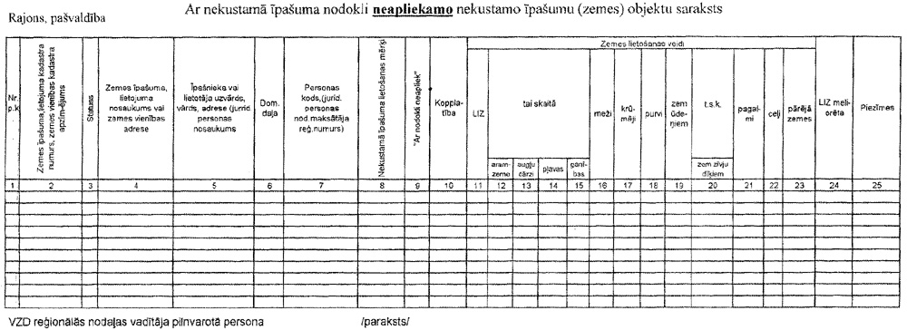 11.1. informāciju sagatavo no KR, izdrukājot ar nekustamā īpašuma nodokli apliekamo zemes īpašumu, lietojumu pamatsarakstus, kuros nav iekļauti dati par valsts meža zemēm;