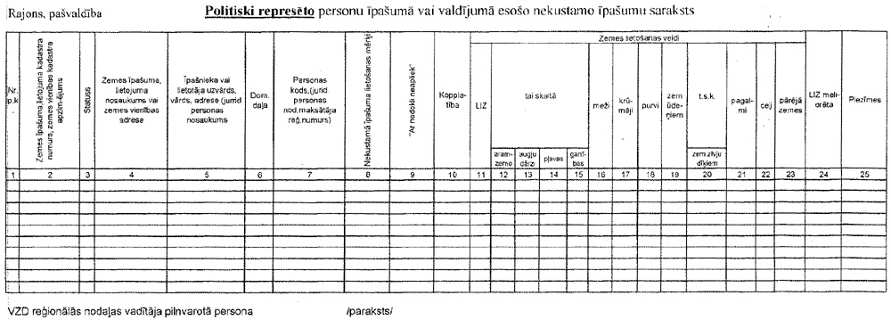 6.2.2. zemi un individuālajām dzīvojamām mājām, kas vismaz piecus gadus ir politiski represēto personu īpašumā vai valdījumā;