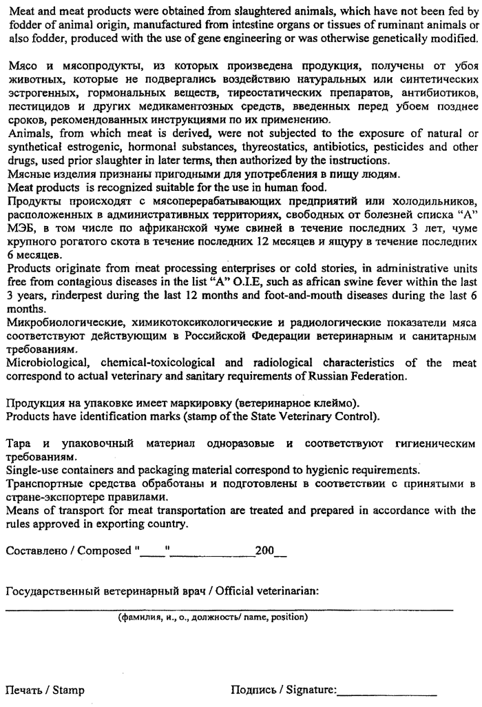2. Gaļas konservu, desu produkcijas un citu gaļas produktu eksportam uz Krievijas Federāciju izsniegt pielikumā noteiktās formas veterināro sertifikātu (2. pielikums).