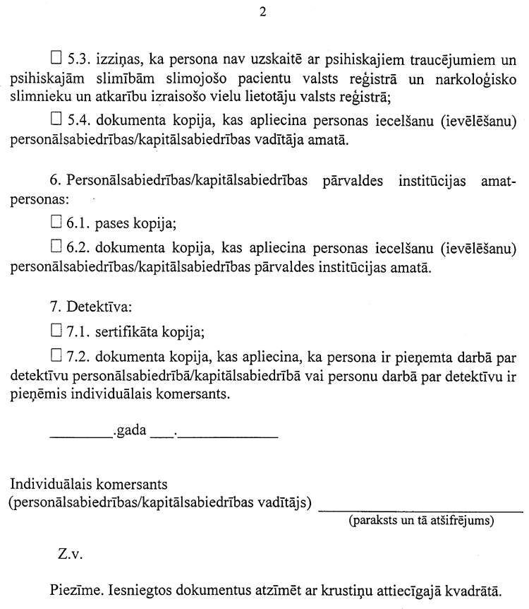 5.7.2. dokumenta kopiju, kas apliecina, ka licences pretendents personu ir pieņēmis darbā par detektīvu.