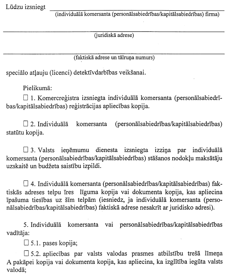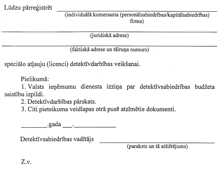 Pieteikums speciālas atļaujas (licences) detektīvdarbības veikšanai saņemšanai