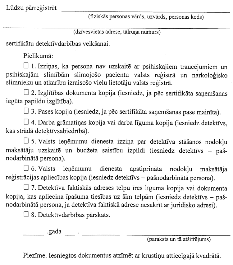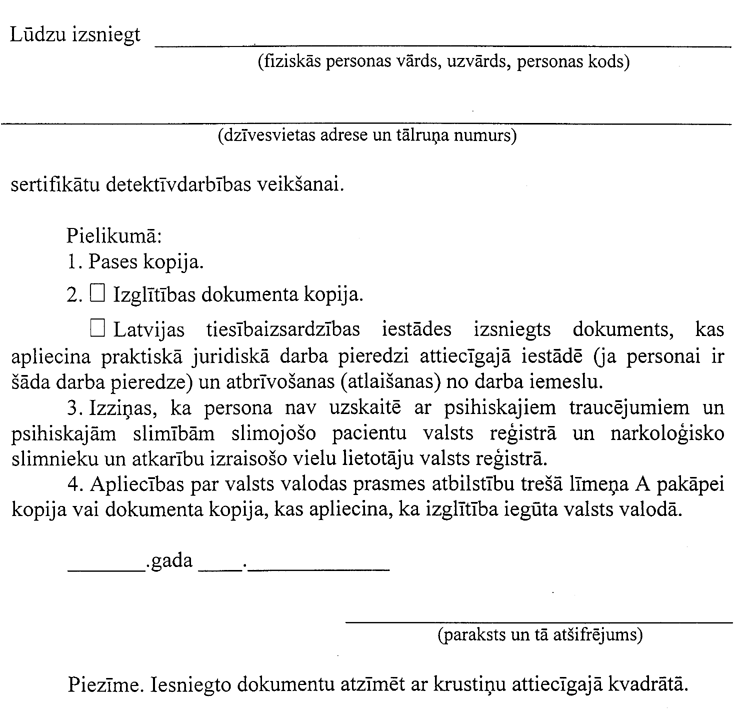 Pieteikums sertifikāta detektīvdarbības veikšanai saņemšanai