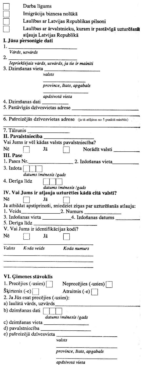 1. Vai līdz šim esat uzturējies(-usies) Latvijā? Jā [ ] Nē [ ]