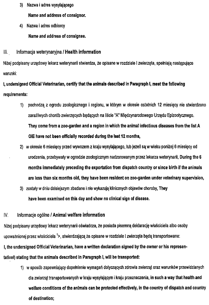Par dzīvnieku veselības sertifikātu Zooloģiskā dārza dzīvnieku izvešanai uz Poliju