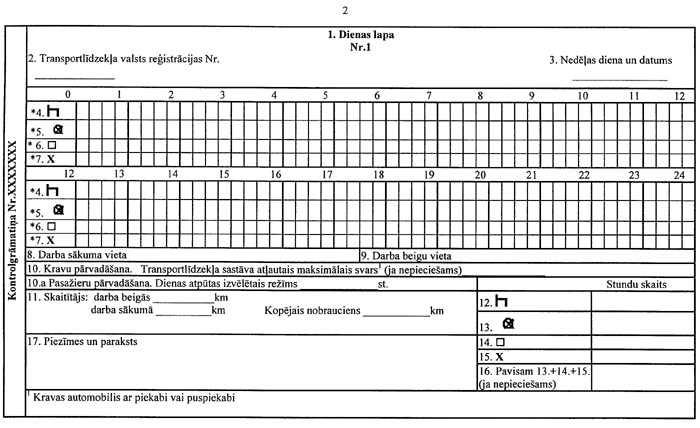 25. Transportlīdzekļa vadītāja darba, pārtraukuma un atpūtas laiku uzskaita normatīvajos aktos noteiktajā kārtībā ar kontrolierīci, kas reģistrē transportlīdzekļa vadītāja darba un atpūtas laiku, braukšanas attālumu un ātrumu. Kontrolierīci uzstāda transportlīdzeklī, pārbauda un plombē atbilstoši normatīvo aktu prasībām.