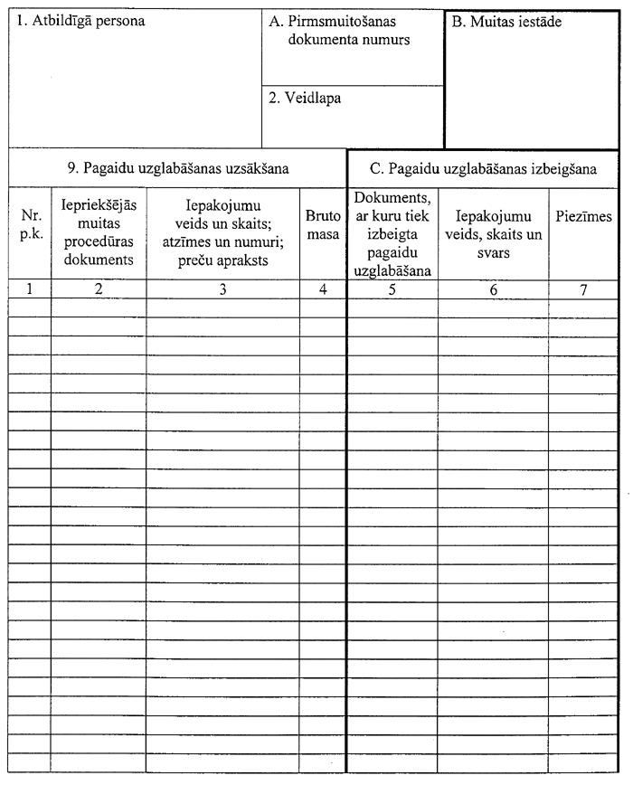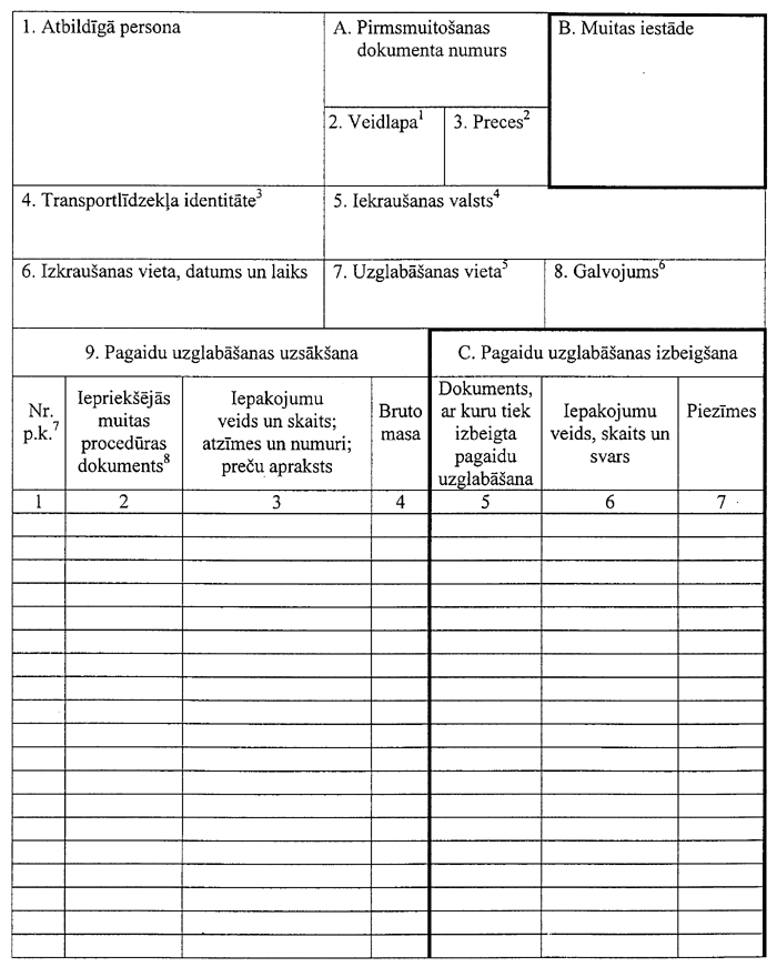 1.3. preču pagaidu uzglabāšanas vietas un pagaidu uzglabāšanas kārtību.