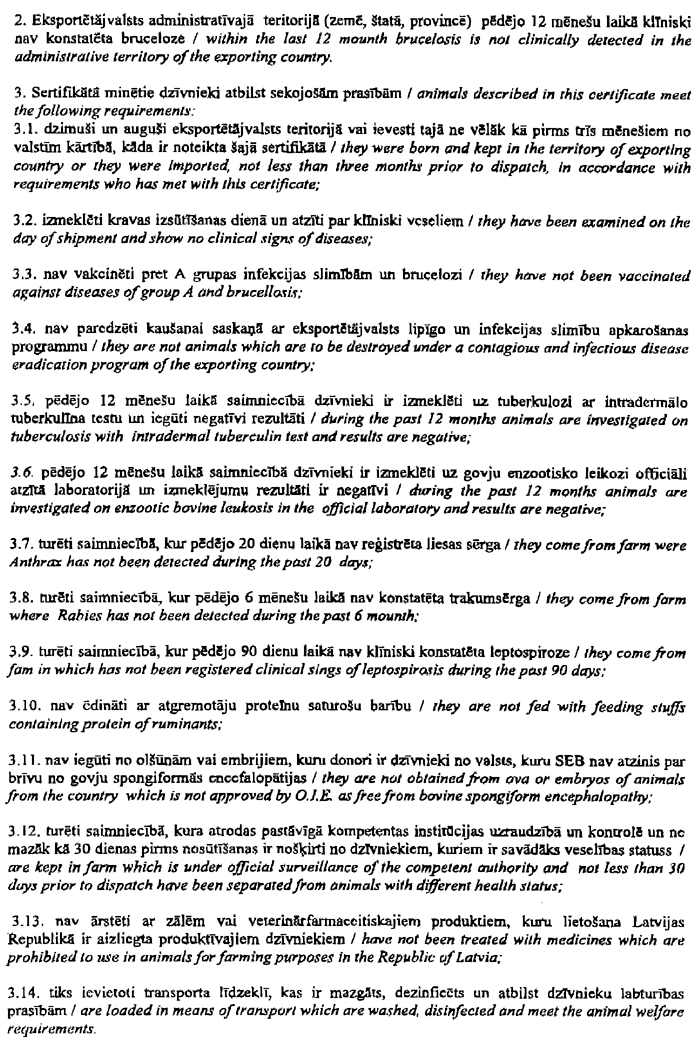 2. Sanitārajai robežinspekcijai kontrolēt veterinārā sertifikāta liellopu ievešanai Latvijas Republikā tūlītējai kaušanai atbilstību sertifikātā noteiktajām prasībām (pielikums).