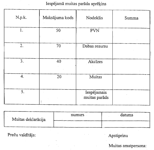 3.3. iespējamā muitas parāda aprēķins (2. pielikums);