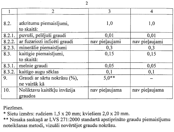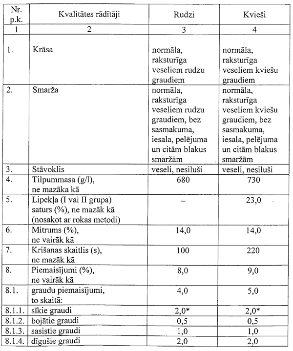 Iepērkamo graudu kvalitātes minimālie rādītāji