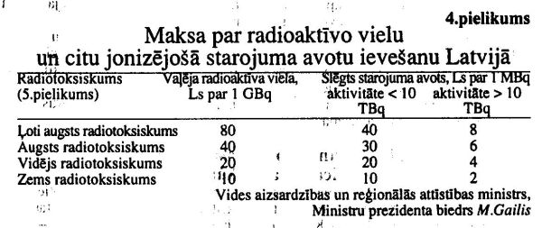 1. Maksa par radioaktīvo vielu ievešanu Latvijas Republikā