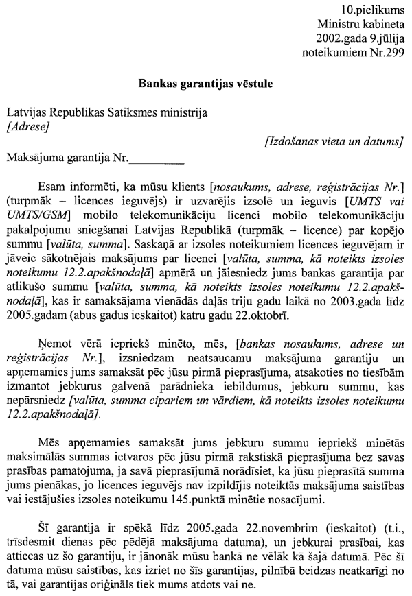 Trīs jaunā standarta UMTS mobilo telekomunikāciju licenču (viena — arī GSM standartā) izsoles noteikumi