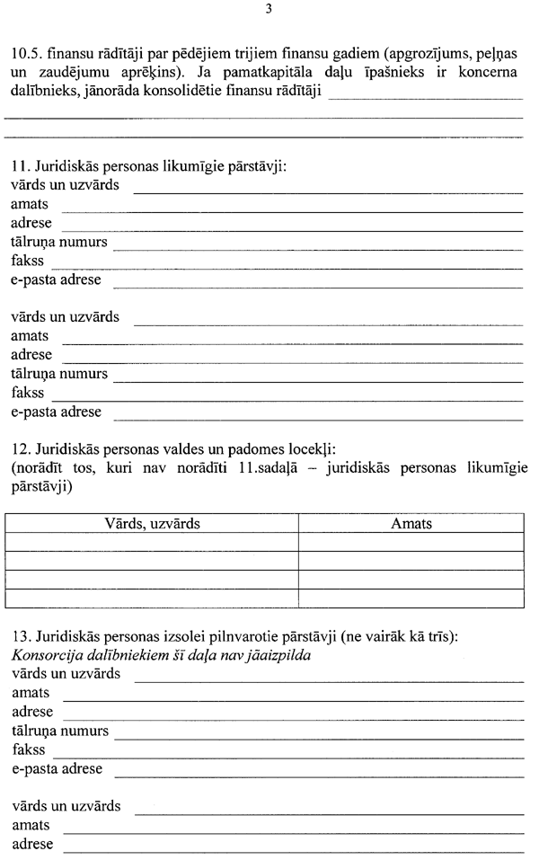 13. Pretendents intereses apliecinājuma veidlapā (3.pielikums) norāda to personu vārdu un uzvārdu, kuriem ir zināma šo noteikumu 3.1.apakšnodaļā minētā informācija. Intereses apliecinājuma veidlapā norādītās personas drīkst zināt šādu informāciju ne vairāk kā par vienu pretendentu vai izsoles dalībnieku.