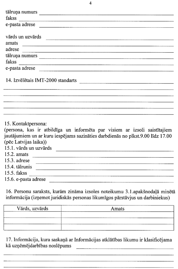 7. Jebkuru IMT-2000 standartu grupas standartu var izmantot UMTS frekvenču joslās. Pretendents intereses apliecinājuma veidlapā norāda, kuru no IMT-2000 grupas standartiem tas izmantos. Pretendents ir juridiska persona vai konsorcijs, kas ir iesniedzis intereses apliecinājumu un vēl nav izturējis priekšatlasi.