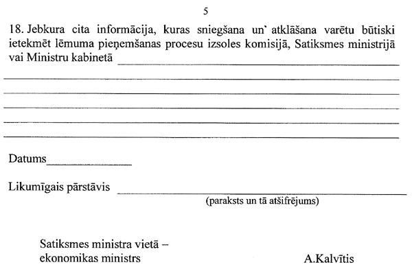 39. Lai izsoles komisija varētu noteikt pretendenta atbilstību izsoles priekšatlases kritērijiem, pretendents izsoles komisijā iesniedz aizpildītu intereses apliecinājuma veidlapu (3.pielikums) un pielikumus, kas minēti šo noteikumu 6.2.apakšnodaļā. Intereses apliecinājuma veidlapa elektroniski ir pieejama Latvijas Republikas Satiksmes ministrijas (turpmāk — Satiksmes ministrija) interneta mājas lapā — http://www.sam.gov.lv.