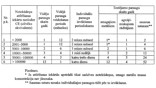 9. Ja notekūdeņu attīrīšanas iekārtu slodze nepārsniedz 5000 cilvēku ekvivalentu (CE) un ja tajās apstrādā tikai sadzīves notekūdeņus, notekūdeņu dūņās un no šādām notekūdeņu dūņām ražotā kompostā smago metālu masas koncentrācija nav jānosaka.