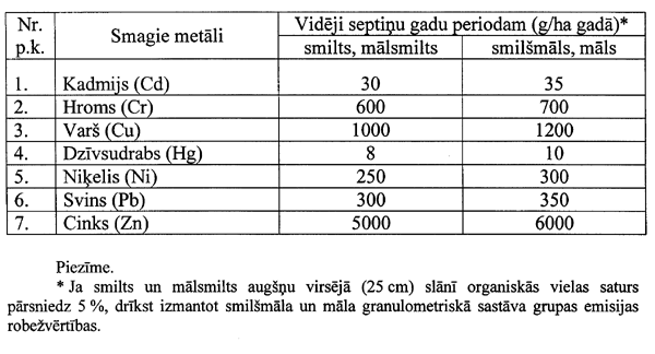 1. Notekūdeņu dūņu un to komposta sausnas gada emisijas robežvērtība ir 2 t/ha gadā.