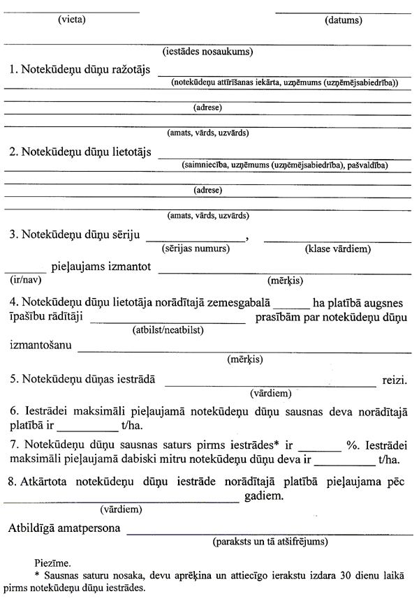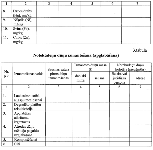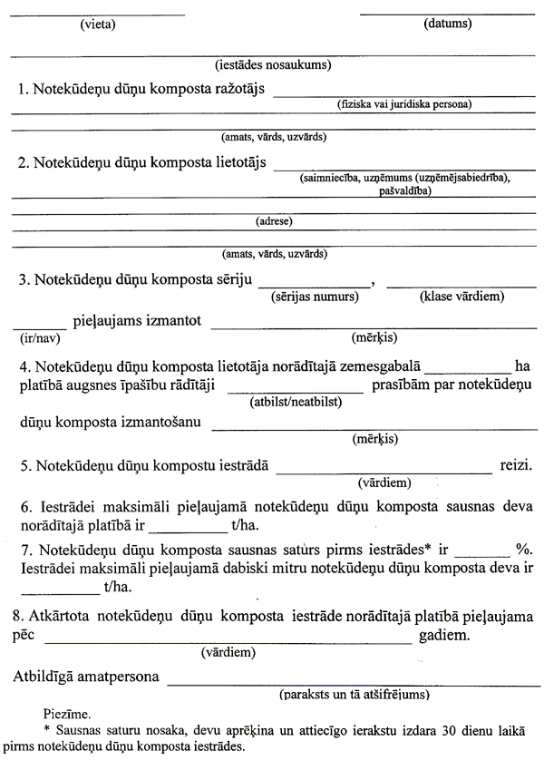 36.3. atzinums par notekūdeņu dūņu vai to komposta iepriekšējo iestrādi šajā platībā, ja notekūdeņu dūņas un to kompostu iestrādā atkārtoti, – iesniedz notekūdeņu dūņu vai to komposta lietotājs.