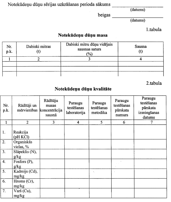 96. Notekūdeņu dūņu ražotājs veic katras notekūdeņu dūņu sērijas masas, kvalitātes un izmantošanas uzskaiti un attiecīgos datus ieraksta speciāli iekārtotā reģistrācijas žurnālā.