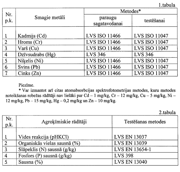 26. Smago metālu masas koncentrāciju augsnē nosaka pirms pirmās, trešās un katras nākamās notekūdeņu dūņu un to kompostu iestrādes.