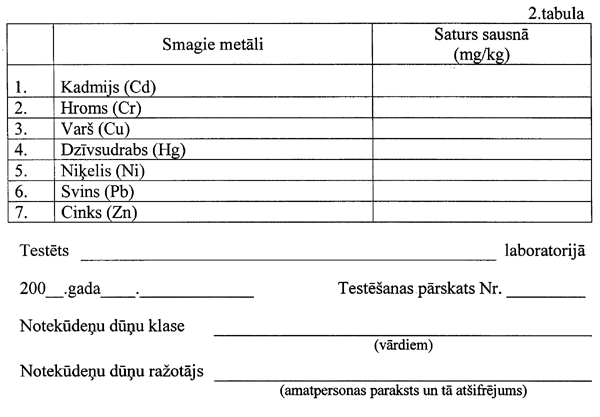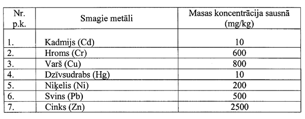 8.1. smago metālu – kadmija (Cd), hroma (Cr), vara (Cu), dzīvsudraba (Hg), niķeļa (Ni), svina (Pb) un cinka (Zn) – masas koncentrāciju sausnā;