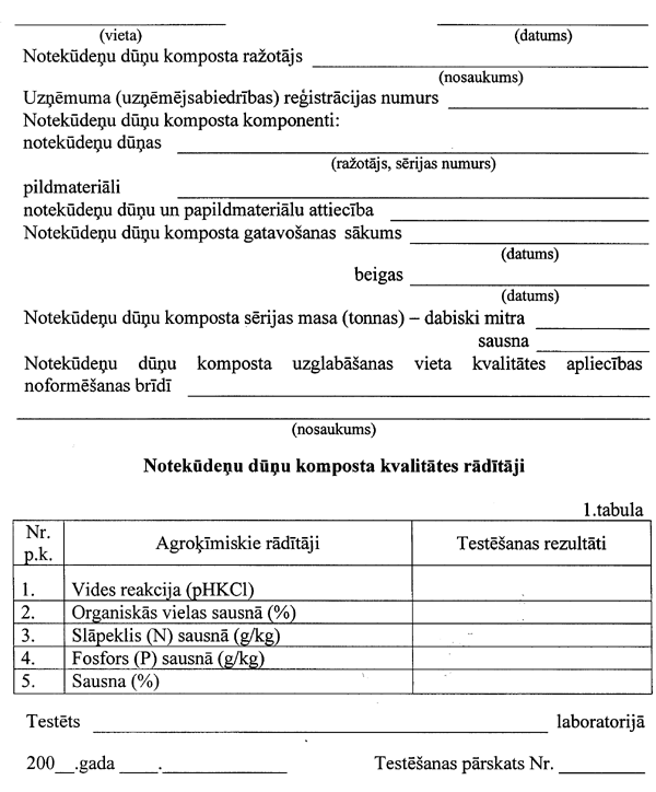 12.2. notekūdeņu dūņu un to komposta kvalitātes testēšanas pārskatus un kvalitātes apliecību oriģinālus, kā arī reģistrācijas žurnālus pēc to pabeigšanas glabā ne mazāk kā desmit gadu.