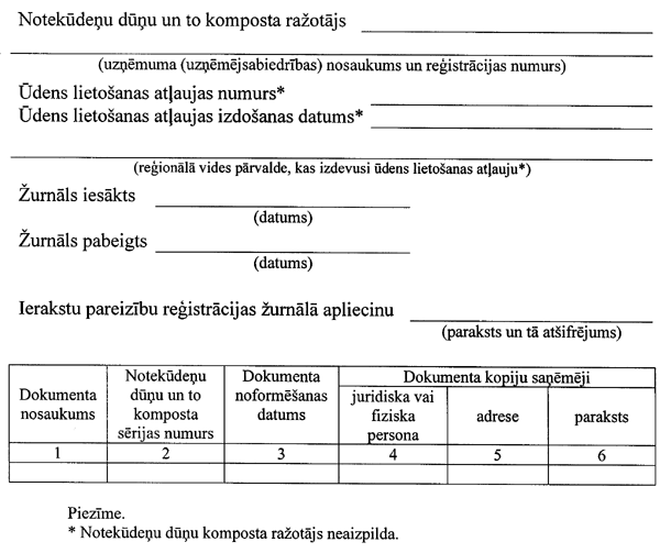 Notekūdeņu dūņu un to komposta sēriju kvalitātes apliecību un notekūdeņu dūņu un to kompostu izmantošanas (apglabāšanas) atzinumu reģistrācijas žurnāls