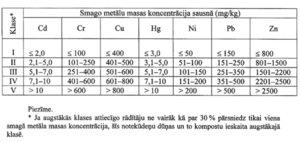 Smago metālu limitējošā masas koncentrācija notekūdeņu dūņās un to kompostā, kas paredzēts augsnes mēslošanai un rekultivācijai vai apglabāšanai sadzīves atkritumu poligonos un izgāztuvēs