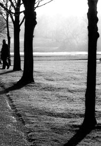Balto sedzu saulītē,/ Pelēko migliņā”