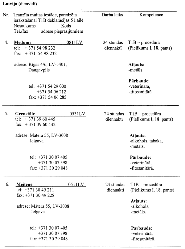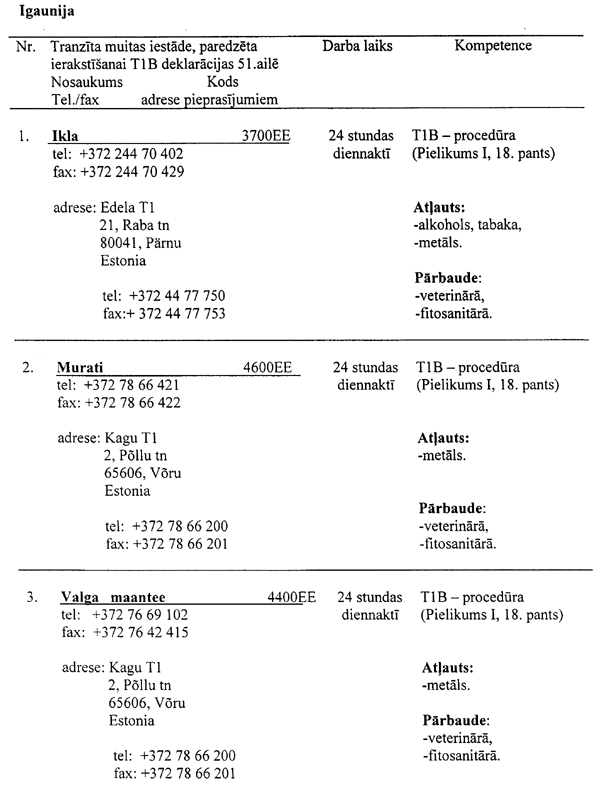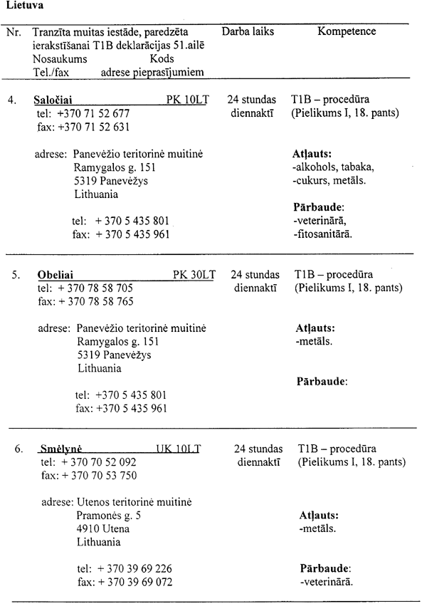 Par pilnvaroto tranzīta muitas iestāžu sarakstu