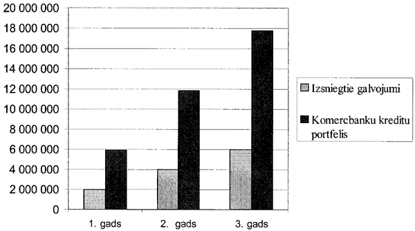 Tādejādi, izmantojot tikai MGF sākotnējo kapitālu, tiks izsniegti 1 622 galvojumi par summu 6,0 milj. Ls(izmantojot sākotnējo kapitālu ar multiplikatoru 2), tai skaitā: