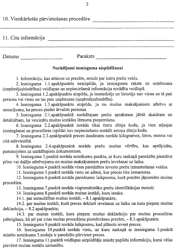 31. Pieteikumu ar lūgumu atļaut mainīt preču lietotāju iesniedz muitas iestādē un paraksta gan preču iepriekšējais, gan jaunais lietotājs, izņemot gadījumu, ja iepriekšējais preču lietotājs savas tiesības lietot preces ir zaudējis.