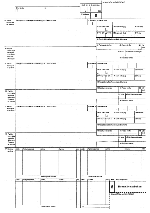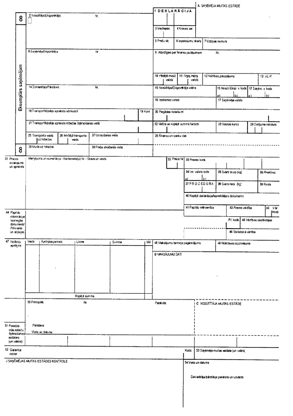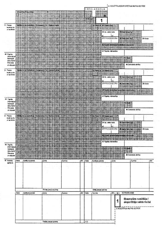 13. Saskaņā ar Muitas likuma 134.panta otro daļu deklarācijas oficiālais paraugs, kas parastajā kārtībā iesniedzams muitas iestādē, lai precēm piemērotu attiecīgo muitas procedūru, ir vienotais administratīvais dokuments (1., 2., 3. un 4.pielikums).