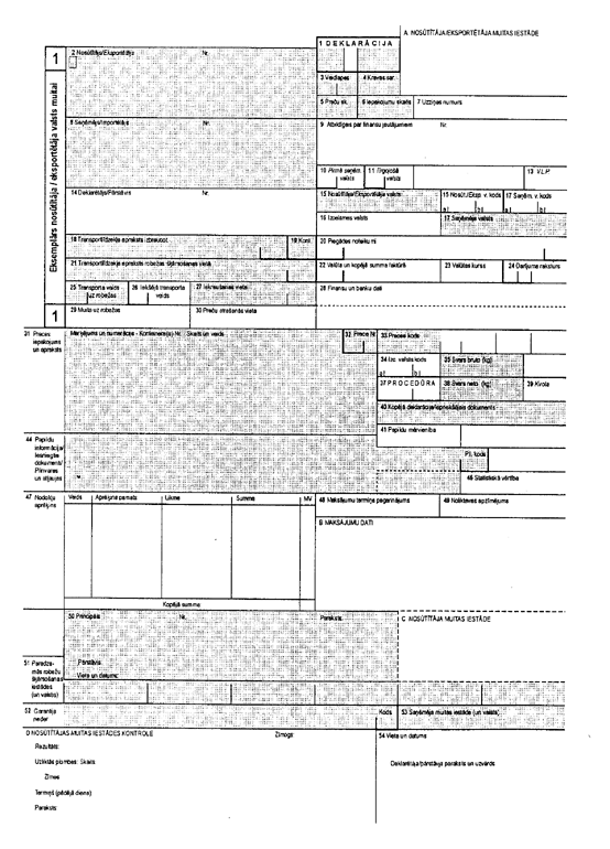 1.3. ailes ar nosaukumiem atbilstoši šajā pielikumā norādītajam veidlapas paraugam. Ailes “Muitas atzīmes” platums nedrīkst būt mazāks par 30 mm, bet pārējo aiļu platumu var izvēlēties atbilstoši vajadzībām.