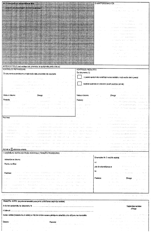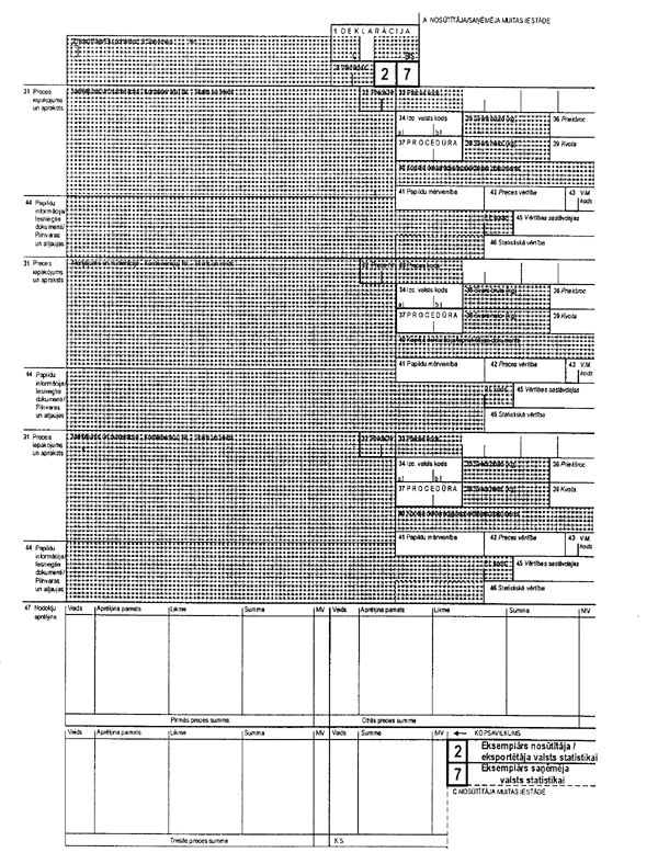 2. Visus formulārus drukā uz balta papīra. Tranzīta formulāriem (1., 4., 5. un 7.formulāram) 1.ailē (pirmajā un trešajā apakšnodalījumā), 2., 3., 4., 5., 6., 8., 15., 17., 18., 19., 21., 25., 27., 31., 32., 33.ailē (pirmajā apakšnodalījumā pa kreisi), 35., 38., 40., 44., 50., 51., 52., 53., 55. un 56.ailē ir zaļš fons.