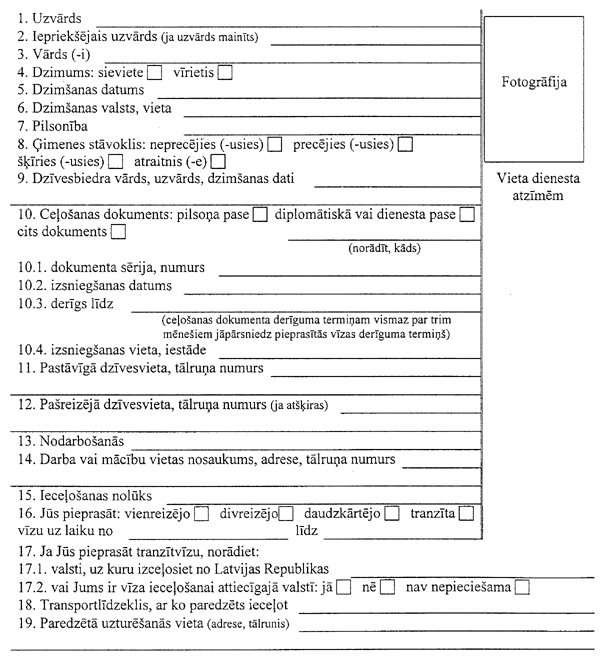 Anketa Latvijas Republikas vīzas saņemšanai