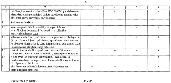 8.1. autopārvadājumu nozari regulējošie Latvijas Republikas normatīvie akti, starptautiskās konvencijas un nolīgumi, Eiropas Savienības regulas un direktīvas;