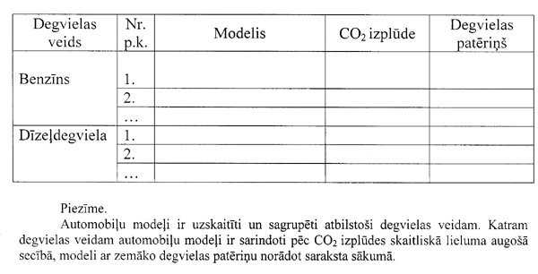 8.3. desmit degvielas patēriņa ekonomijas ziņā visefektīvākie automobiļu modeļi, kas sarindoti augošā secībā pēc īpatnējās CO2 izplūdes skaitliskā lieluma. Sarakstā norāda automobiļa modeli, oficiāli noteiktā degvielas patēriņa un oficiāli noteiktās CO2 izplūdes skaitlisko lielumu;