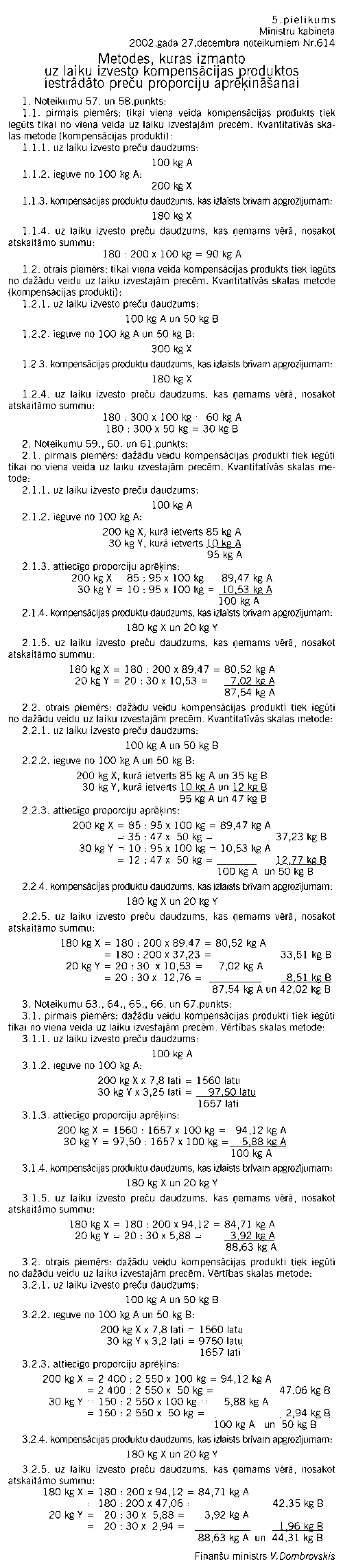 63. Ja kāds no kompensācijas produktu veidiem netiek ievests atpakaļ, šo kompensācijas produktu vērtība, kas noteikta ar vērtības skalas metodi, ir vienāda vai līdzīga ar kompensācijas produktu pārdošanas cenu, kas piemērota Latvijā, ar nosacījumu, ka attiecīgo cenu nav ietekmējušas pircēja un pārdevēja savstarpējās saistības.