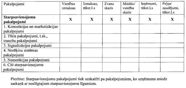 6.3. Uzņēmumiem, kuri sniedz starpsavienojumu un/vai īpašās piekļuves pakalpojumus, pakalpojumiem, kas tiek sniegti saskaņā ar noslēgtajiem līgumiem.