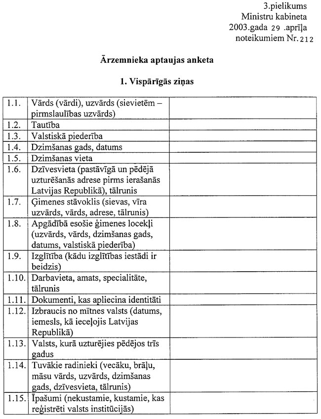13.1. aizpildītu ārzemnieka aptaujas anketu (3.pielikums);