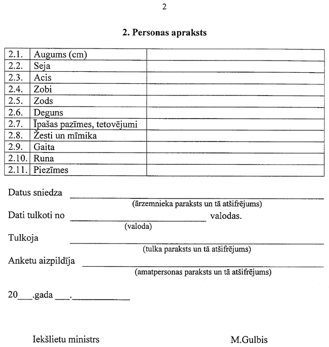 13.2. ārzemnieka daktiloskopisko karti;