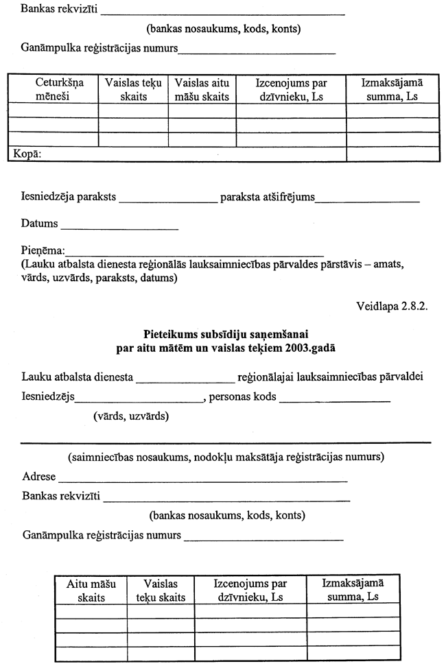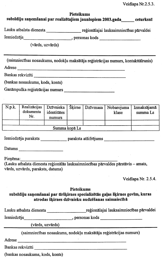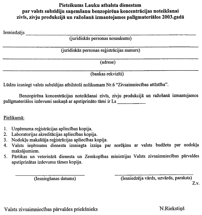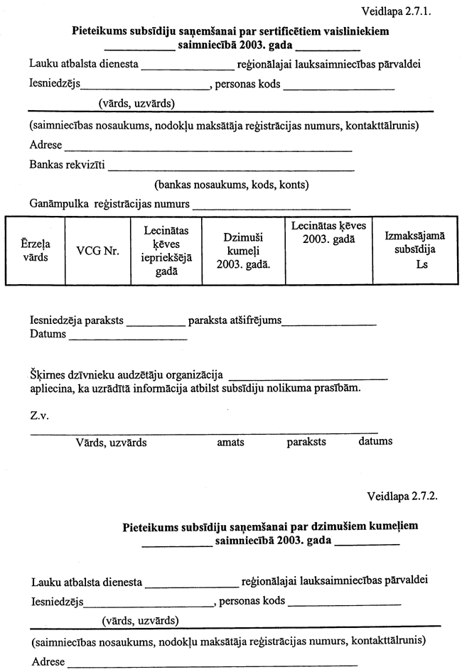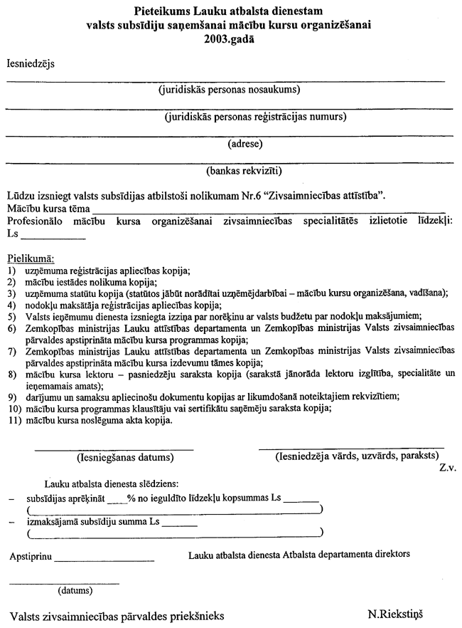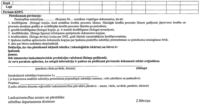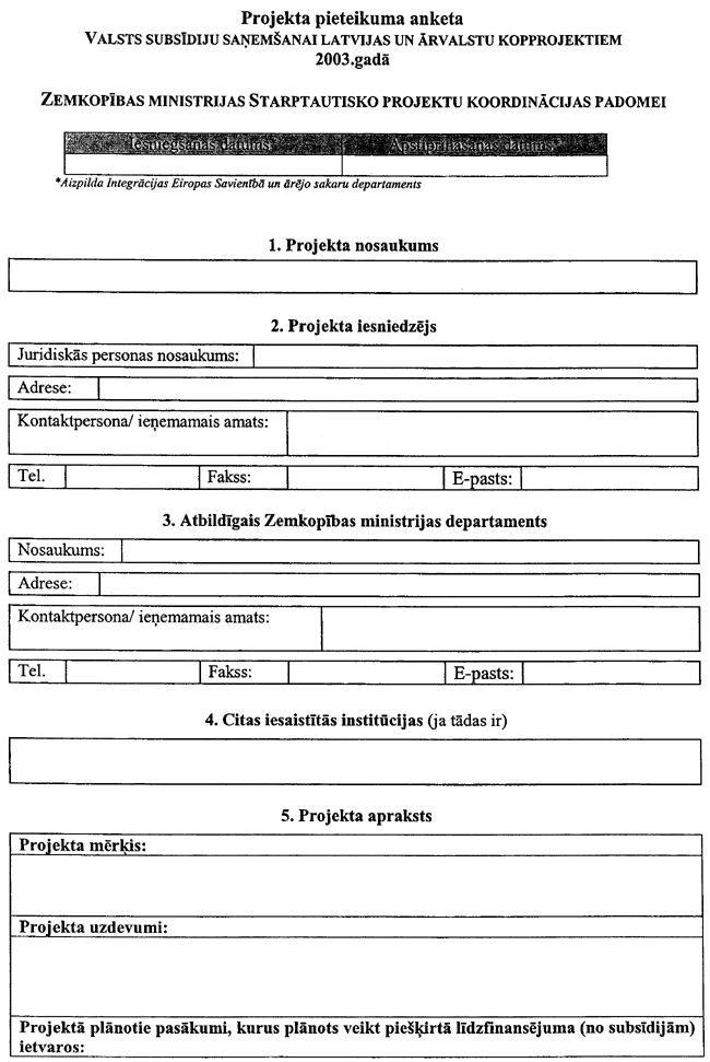 5. Institūts subsīdiju saņemšanai līdz 2003. gada 30. aprīlim Lauku atbalsta dienestā iesniedz: