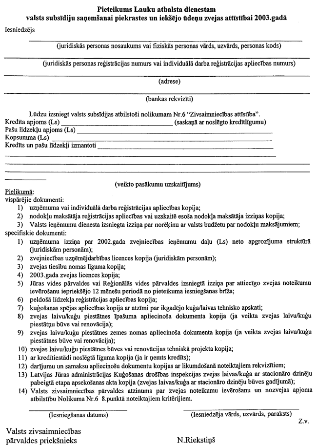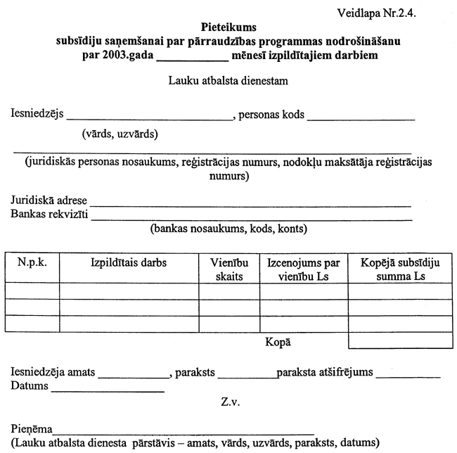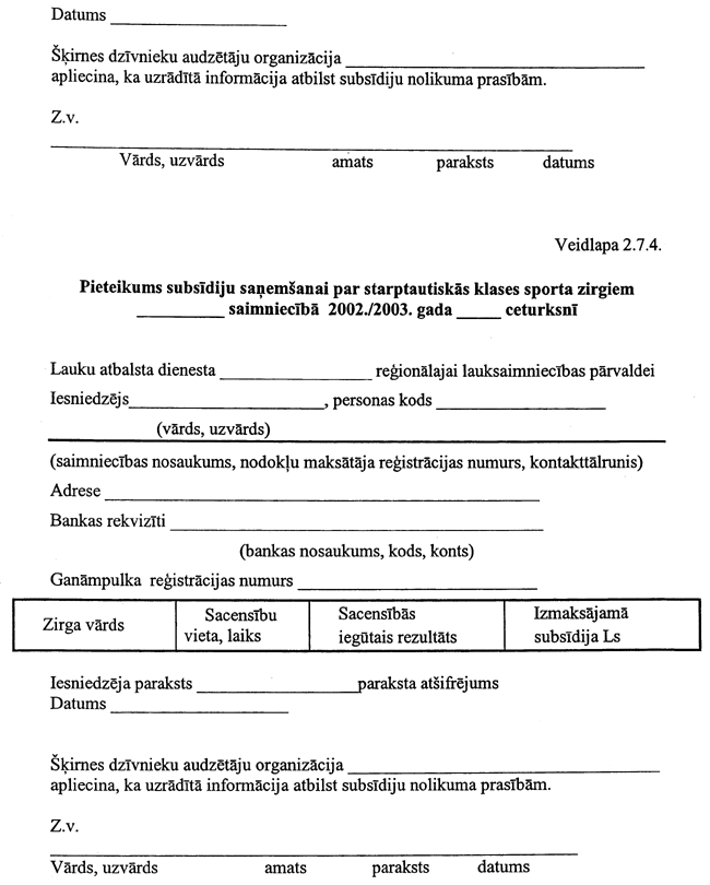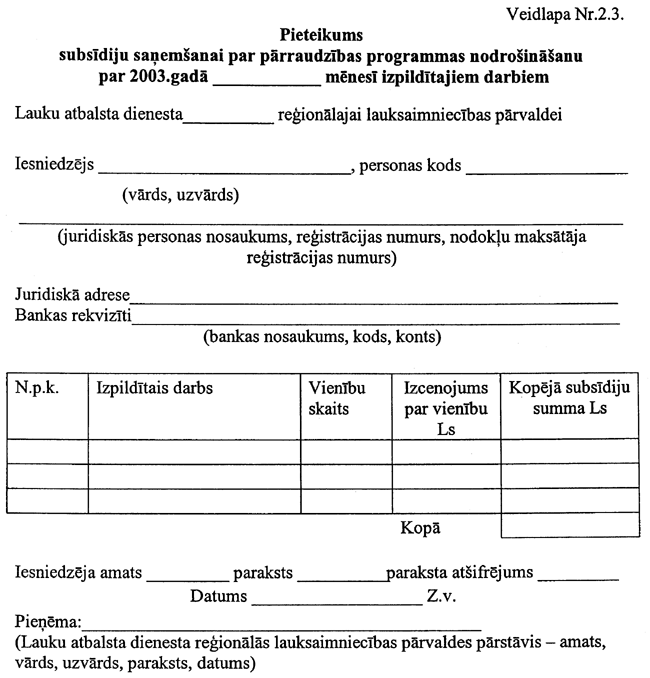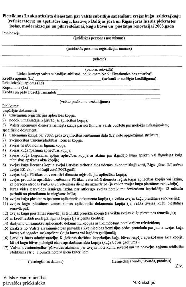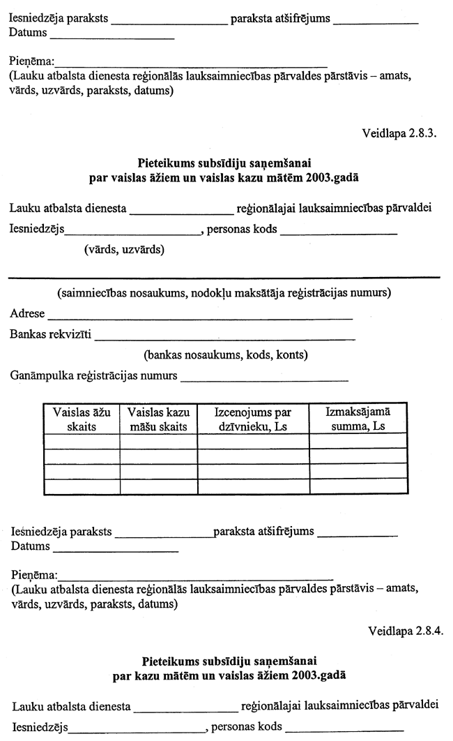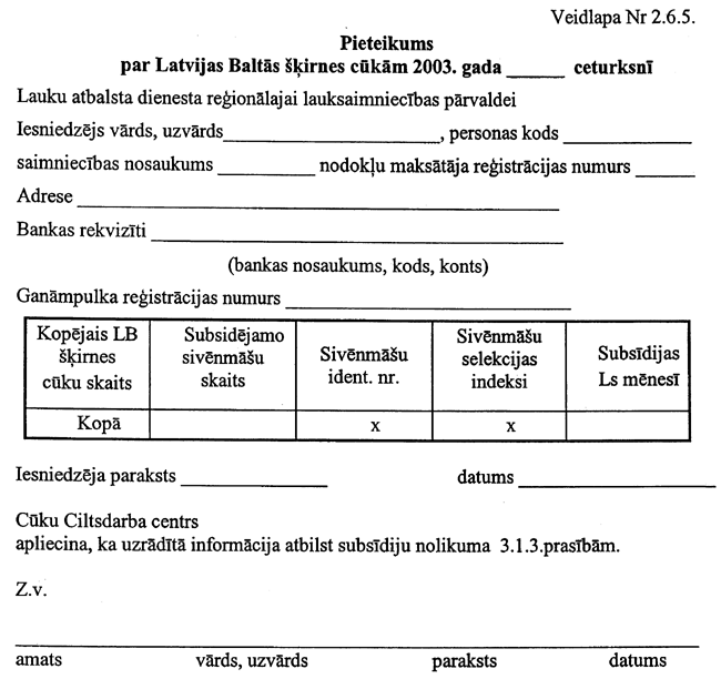 5. Institūts subsīdiju saņemšanai līdz 2003. gada 30. aprīlim Lauku atbalsta dienestā iesniedz: