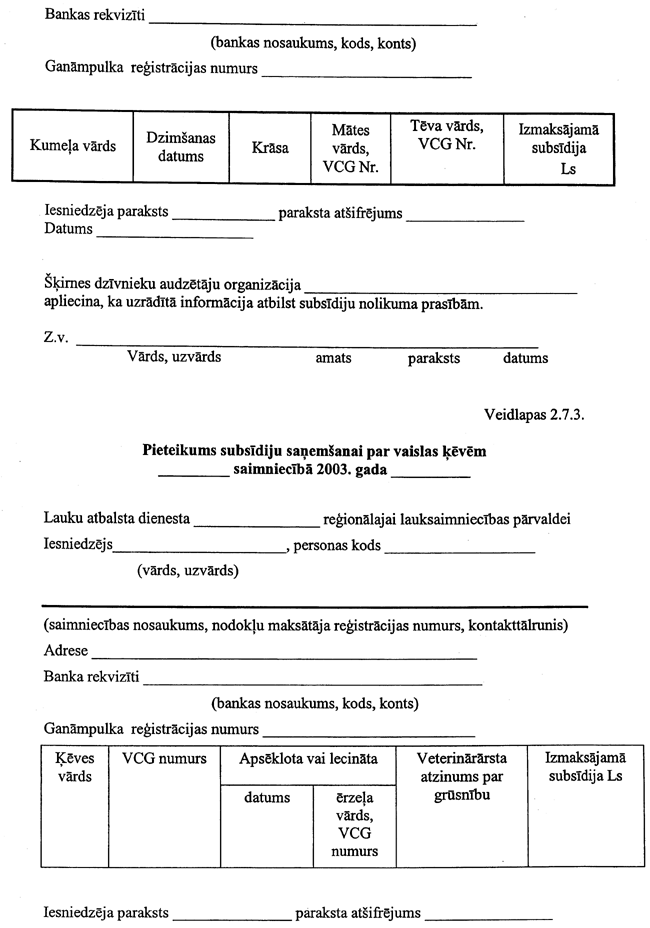 1. Apstiprināt valsts subsīdiju sadali (latos) un nolikumus 2003. gadam: |
