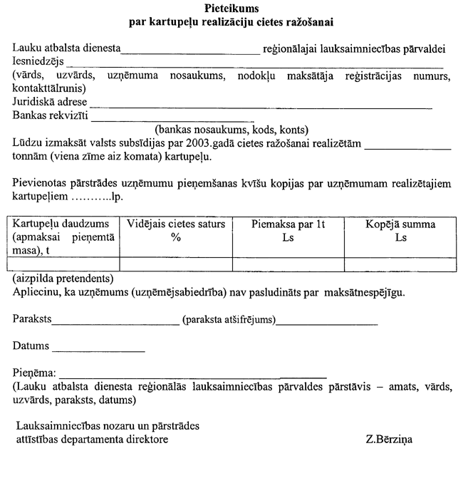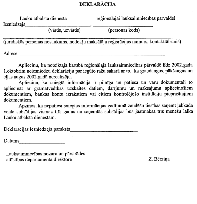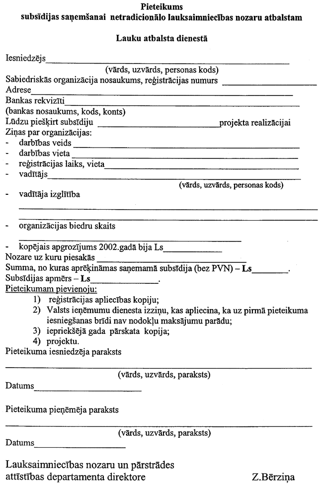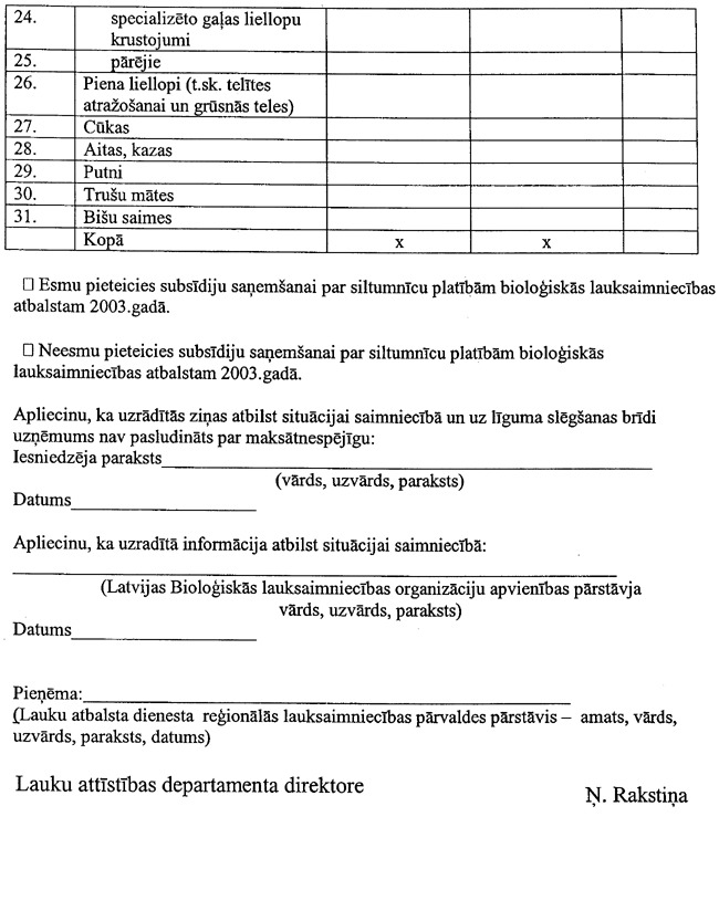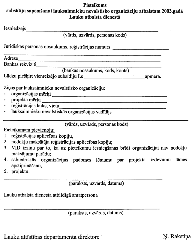 4. Apvienība subsīdiju saņemšanai līdz 2003. gada 30. aprīlim Lauku atbalsta dienestā iesniedz ar Zemkopības ministrijas Lauku attīstības departamenta direktoru saskaņotu: