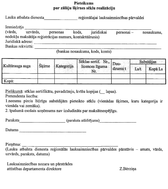 Lauksaimniecības nozaru un pārstrādes attīstības departamenta direktore Z.Bērzia