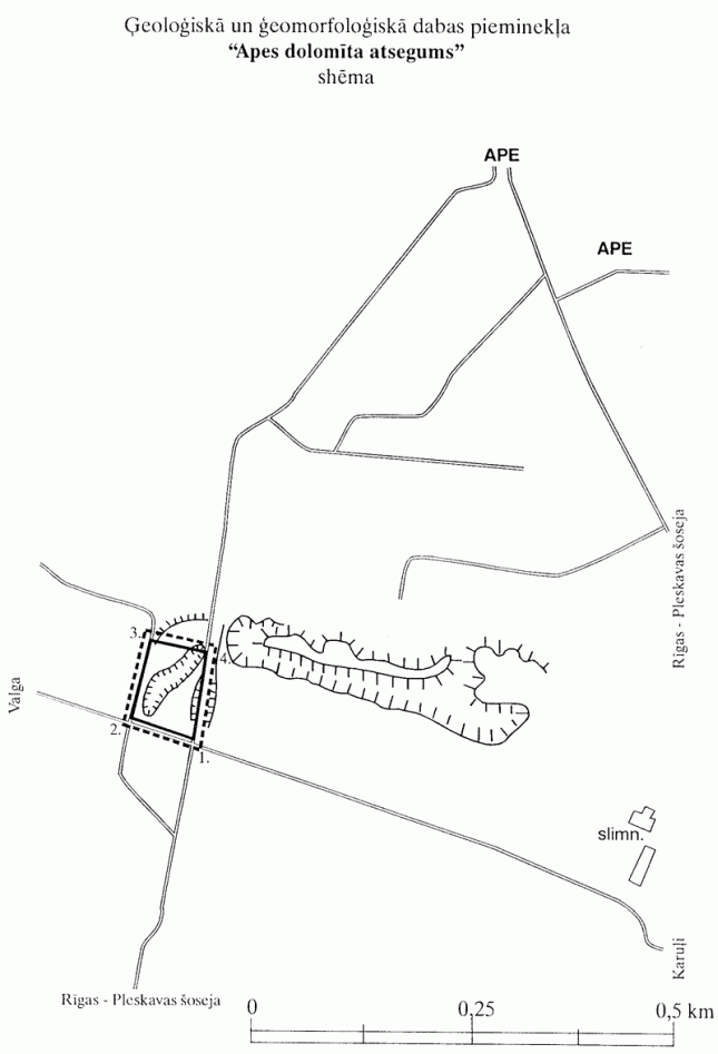 Ģeoloģiskā un ģeomorfoloģiskā dabas pieminekļa “Apes dolomīta atsegums” robežu apraksts