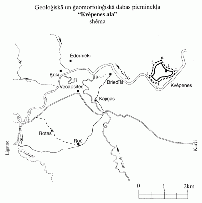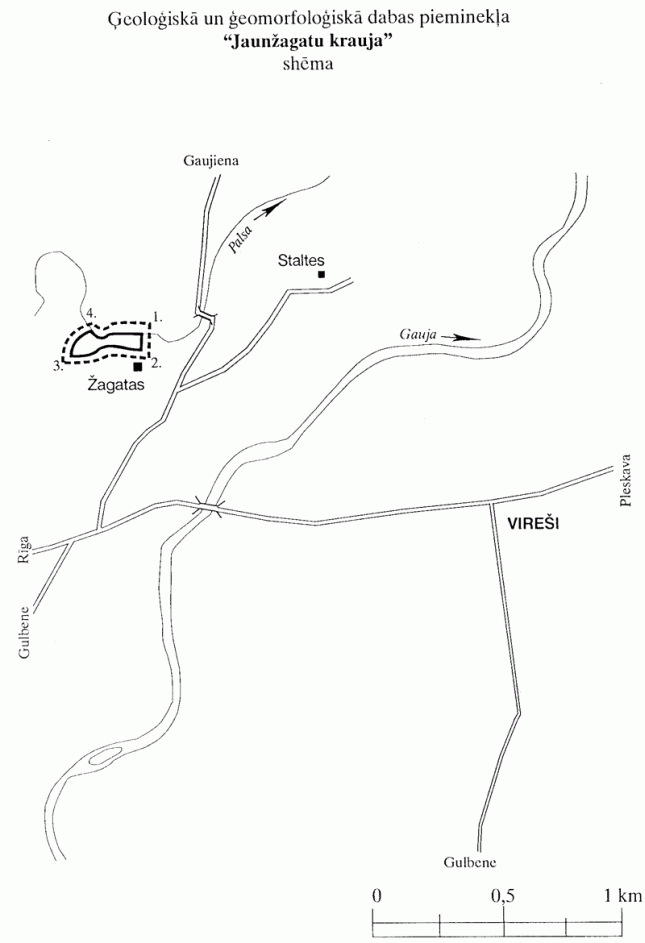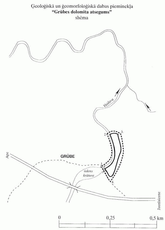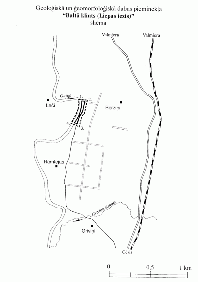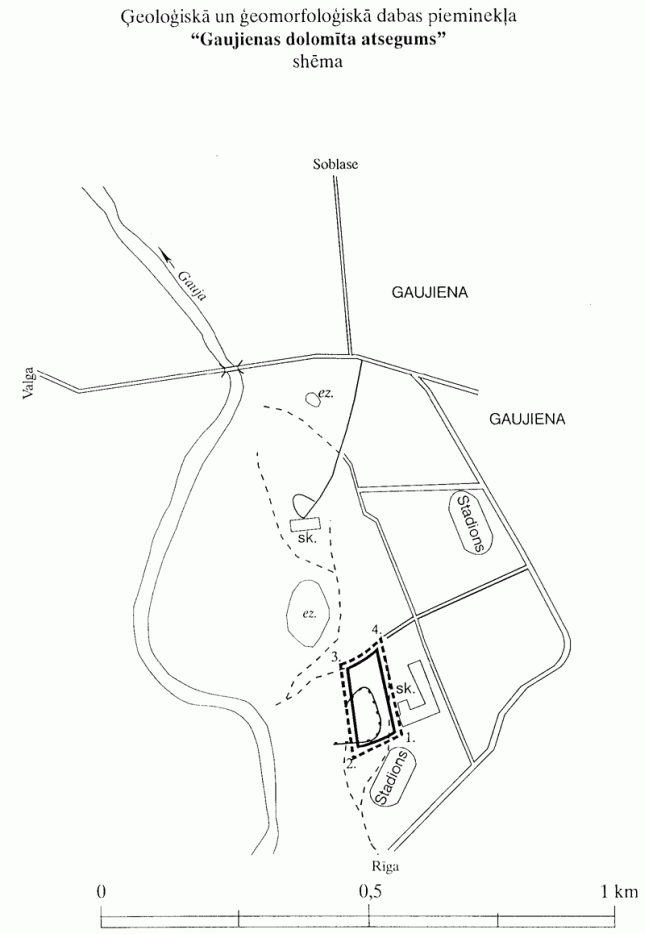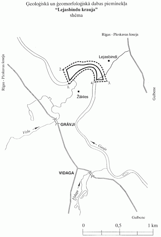 Pa gravu uz dienvidiem lejup līdz stāvās nogāzes krituma pakājei, tad 50 m uz dienvidrietumiem gar nogāzes apakšējo malu līdz Gaujas labajam krastam |