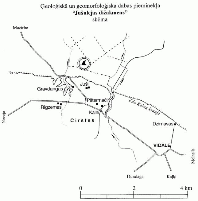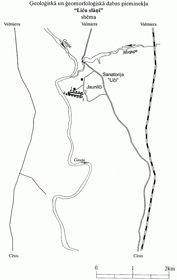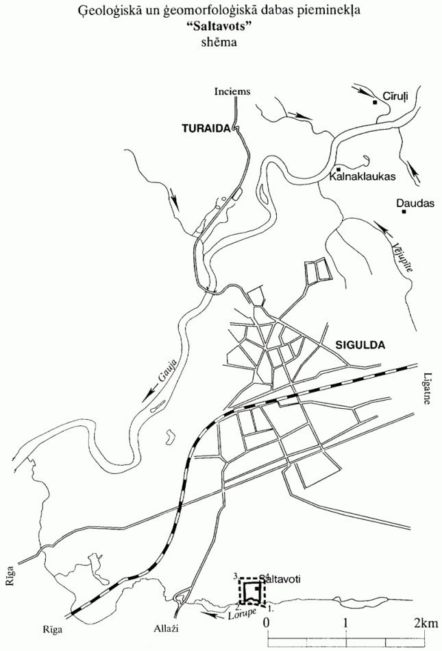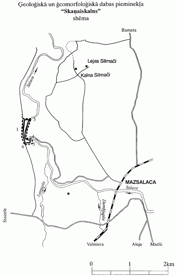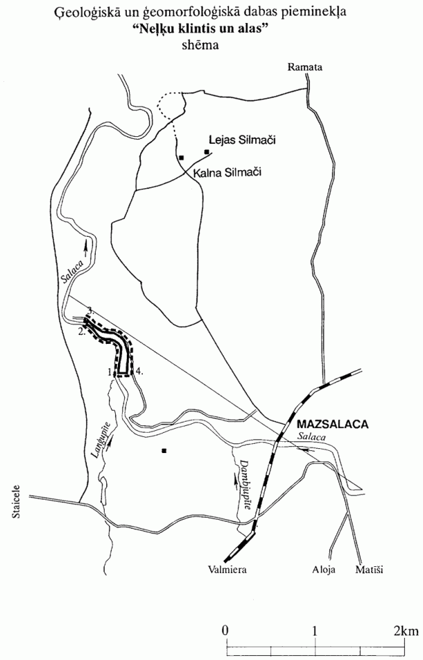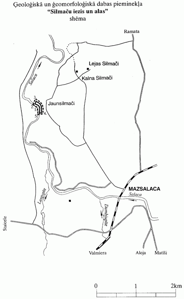 50 m uz austrumiem lejup pa nogāzi līdz Salacas upei |